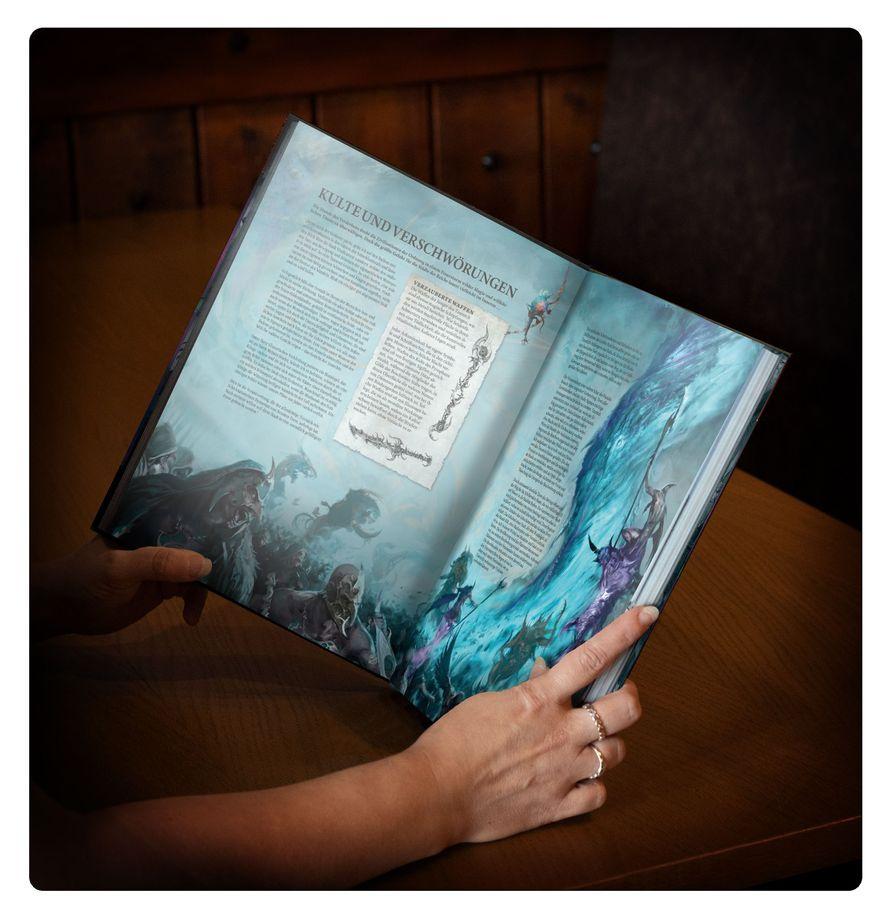 Wahnsinn herrscht, wenn die Jünger des Tzeentch in den Krieg marschieren. Kultisten, Dämonen und nach Macht suchende Hexer entfesseln ein kaleidoskopisches Inferno unheimlicher Magie und feiern jede verbrannte Seele, die sie dem Gott des Wandels als Tribut darbringen. Als stets manipulativster und listigster der Dunklen Götter genießt Tzeentch die Anarchie der Stunde des Verderbens – dem großen Angriff des Chaos, der die Reiche in Unordnung versetzt hat. Seine Anhänger verbergen sich vor allen Augen in Städten und Festungen und bereiten sich auf einen großen Aufstand vor, der den Himmel aufbricht und die Erde verzerrt, sie entfesseln ein höllisches Pandämonium und formen die Realität nach Tzeentchs verzerrtem Abbild neu.