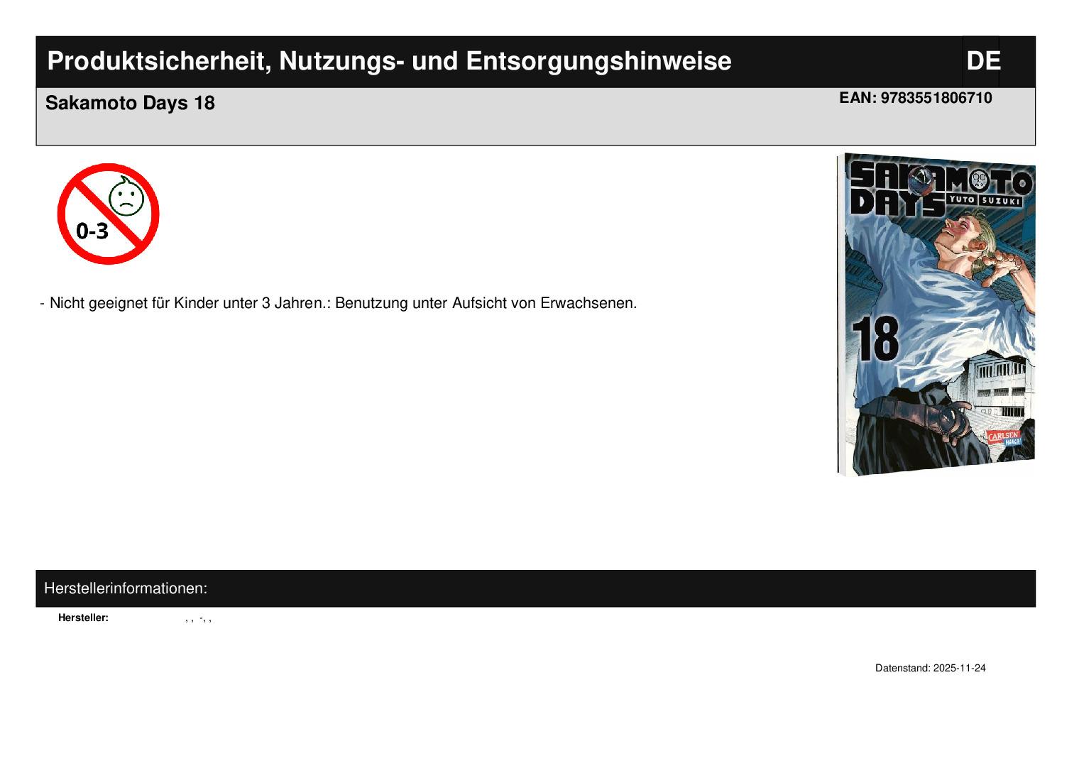 "Der Kampf um den Ruhestand beginnt!Einst war er der ultimative Auftragskiller, der beste von allen. Mord war seine Leidenschaft, Waffen seine treuen Freunde. Doch als Taro Sakamoto auf die Liebe seines Lebens trifft, schwört er, sich zu ändern. Kurzerhand tauscht er seine Knarren gegen Schürzen ein und arbeitet nun in einem Supermarkt. Statt Kampftraining kämpft er lieber mit einer guten Portion Instantnudeln. Seine Frau und seine kleine Tochter bedeuten ihm alles. Doch dann taucht der junge Assassin Shin im Supermarkt auf und Sakamoto muss wohl oder übel seine alten Tricks auspacken. Doch wie soll er gegen jemanden gewinnen, der im wahrsten Sinne des Wortes Gedanken lesen kann?!Actionkomödie über einen charakterstarken Ex-Gangster und einen Auftragsmörder mit übernatürlichen FähigkeitenAnime auf NetflixDie Serie gilt als noch nicht abgeschlossenFür Fans von ""Yakuza goes Hausmann""Ideal für Jungs, Mädchen und alle Geschlechter ab 14 Jahren""Sakamoto Days"" ist genau eine gelungene Mischung aus Yakuza-Action, Comedy und Slice of Life."