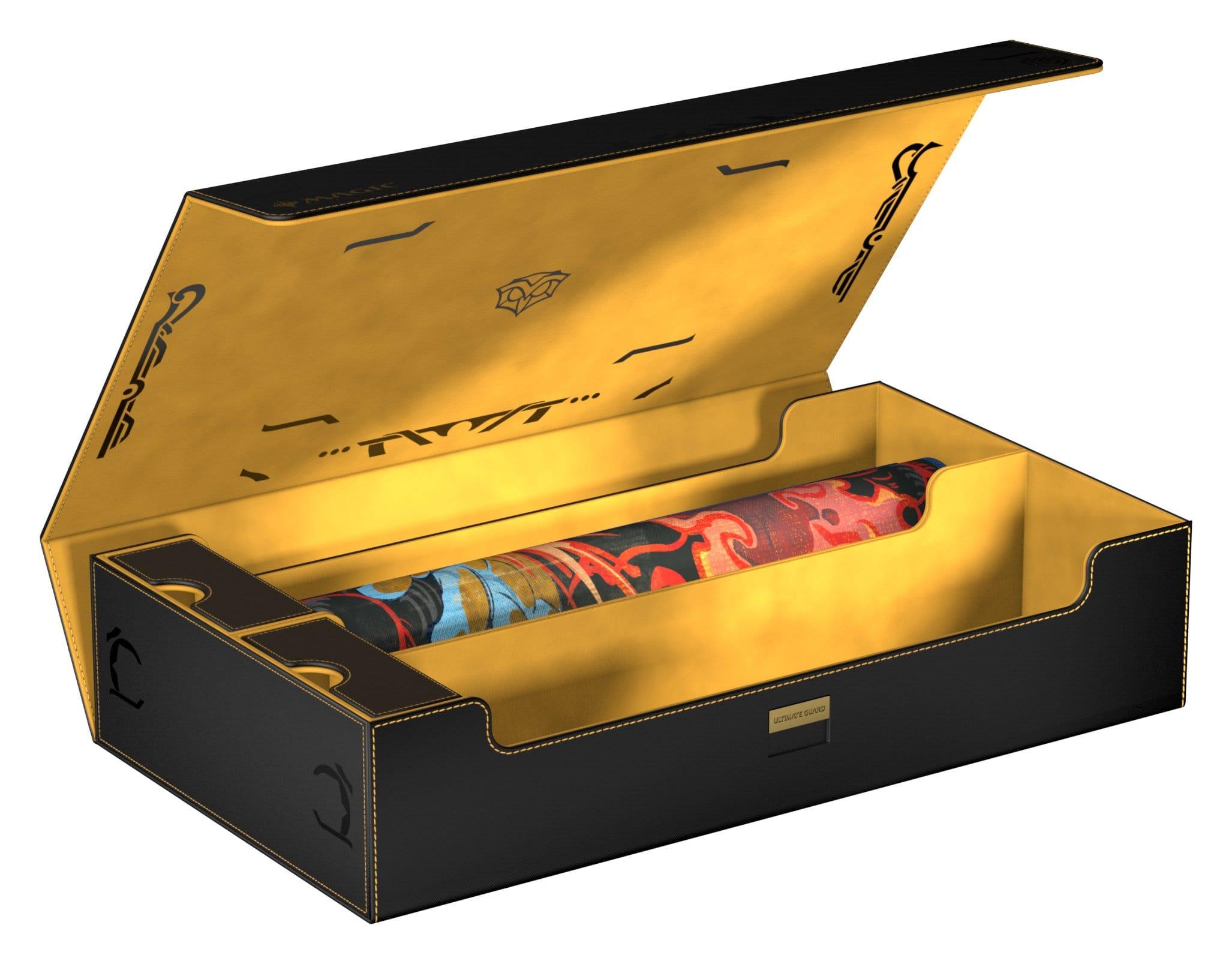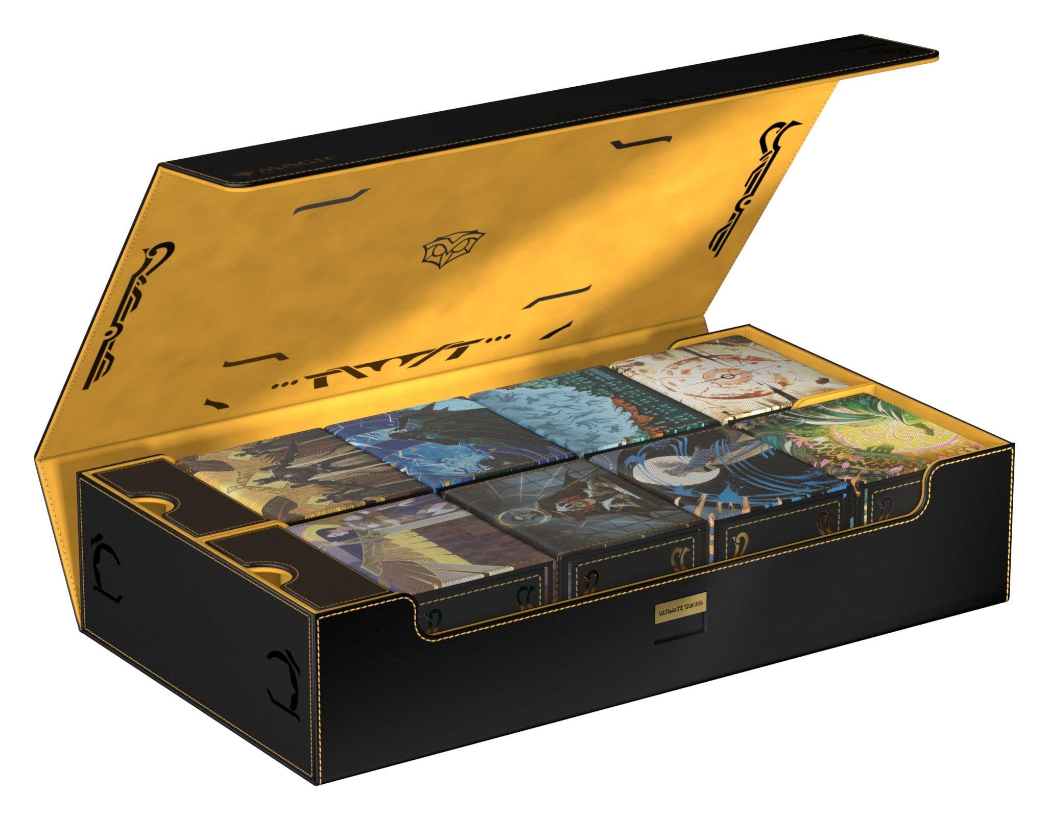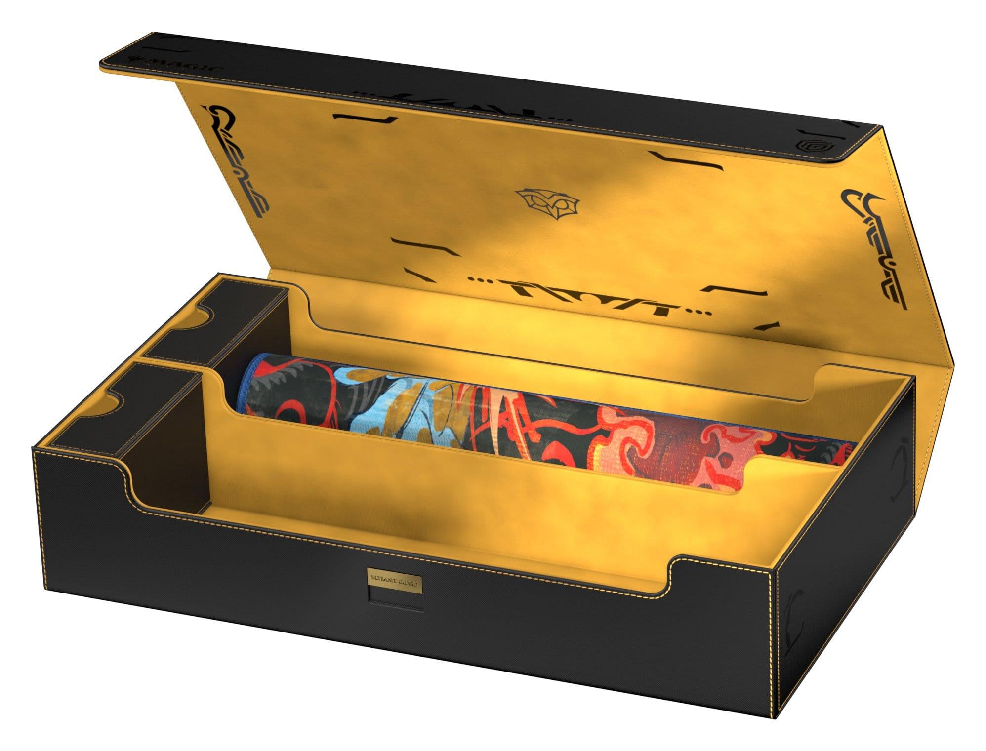 Der Omnihive 1000+ Xenoskin von Ultimate Guard mit offiziell lizenziertem Artwork aus dem Magic: The Gathering-Set Secrets of Strixhaven ist die ultimative Aufbewahrungsbox für mehrere MTG-Deck-Boxen und/oder Play-Mats. Er verfügt zudem über zwei flexibel positionierbare, magnetische Zubehörfächer und garantiert dank seines widerstandsfähigen Xenoskin-Materials, einer hochwertigen Mikrofaserinnenseite und eines starken Magnetverschlusses mit zusätzlichem ZnapClaw-Mechanismus Premiumschutz. Mit einer Kapazität für acht Sidewinder 100+, sechs Sidewinder 133+ oder alternativ bis zu 1000 doppelt gesleevte Einzelkarten (in Ultimate Guard-Hüllen*) ist der Omnihive 1000+ Xenoskin ideal geeignet, um einen Cube aufzubewahren.