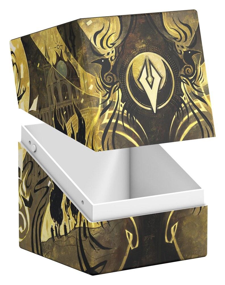Der RTE Boulder 100+ von Ultimate Guard ist eine robuste und zuverlässige Deck-Box, deren strahlender Vollfarbdruck offiziell lizenzierte Artworks aus dem Magic: The Gathering-Set Secrets of Strixhaven zeigt. Trotz seines sicheren Verschlusses lässt sich der RTE Boulder 100+ einfach und bequem öffnen und bietet Platz für 100 doppelt gesleevte Karten (in Ultimate Guard-Hüllen*), was ihn zur idealen Deck-Box für alle Magic-Formate (Commander/EDH, Modern, Standard, usw.) macht. Die MTG-Deck-Box wird in Deutschland aus 78% erneuerbaren Rohstoffen hergestellt und in einer umweltfreundlichen Verpackung aus 100% recyceltem und weiter recycelbarem Material geliefert. Boulder sind mit allen Massenaufbewahrungsboxen von Ultimate Guard kompatibel und lassen sich besonders gut mit Arkhive-, Superhive- und Flip'n'Tray-Boxen kombinieren.