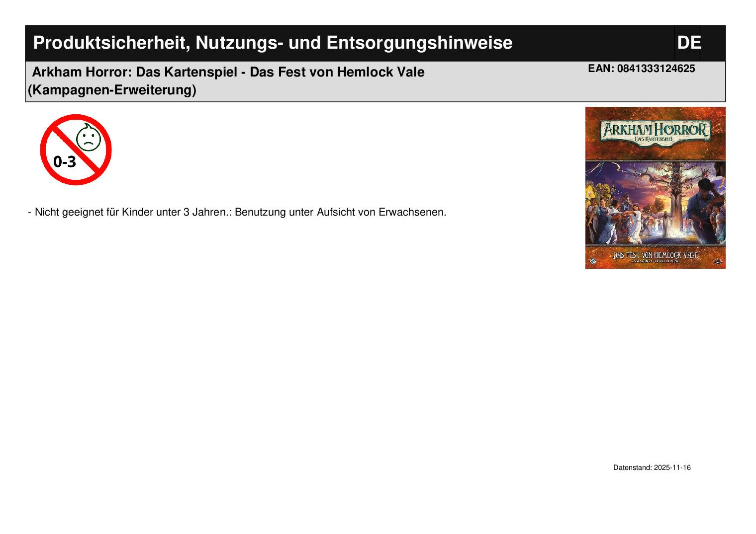 Produktinformationen "Arkham Horror: Das Kartenspiel - Das Fest von Hemlock Vale (Kampagnen-Erweiterung)"