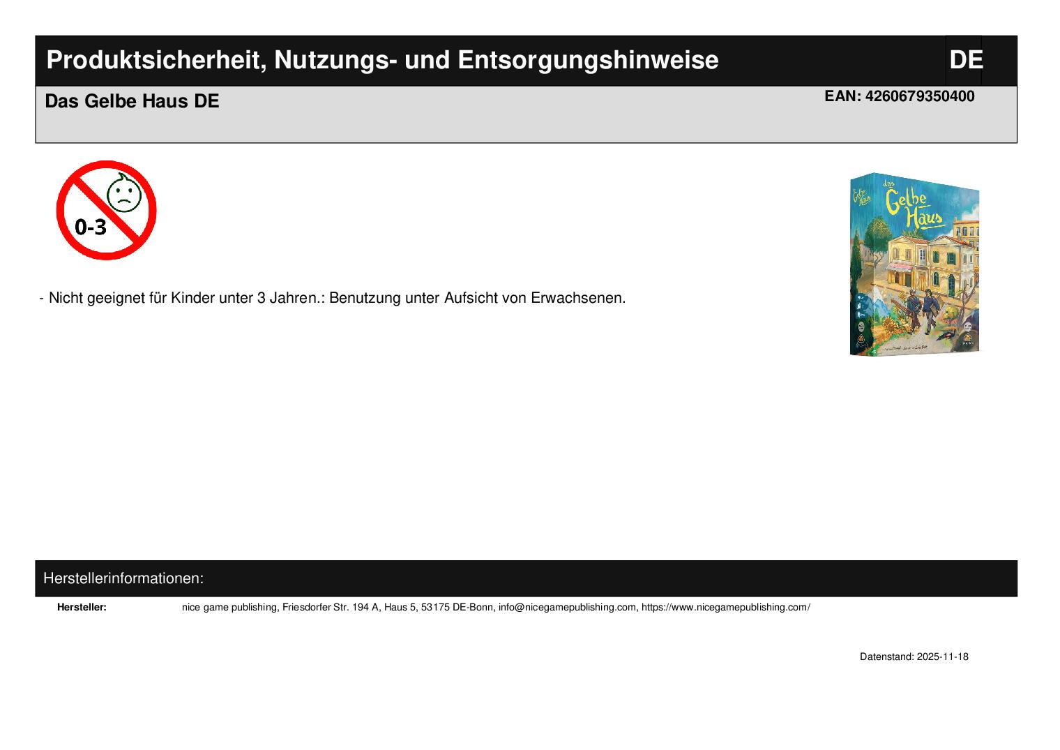 In Das Gelbe Haus spielt ihr zwei Künstler, die sich darüber streiten, was denn nun in der Kunst am wichtigsten ist: Talent, Hingabe, Leidenschaft oder Geld. Bleibt flexibel, wechselt die Themen und spielt eure Karten geschickt, damit ihr das letzte Wort habt und die Diskussion am Ende gewinnt!