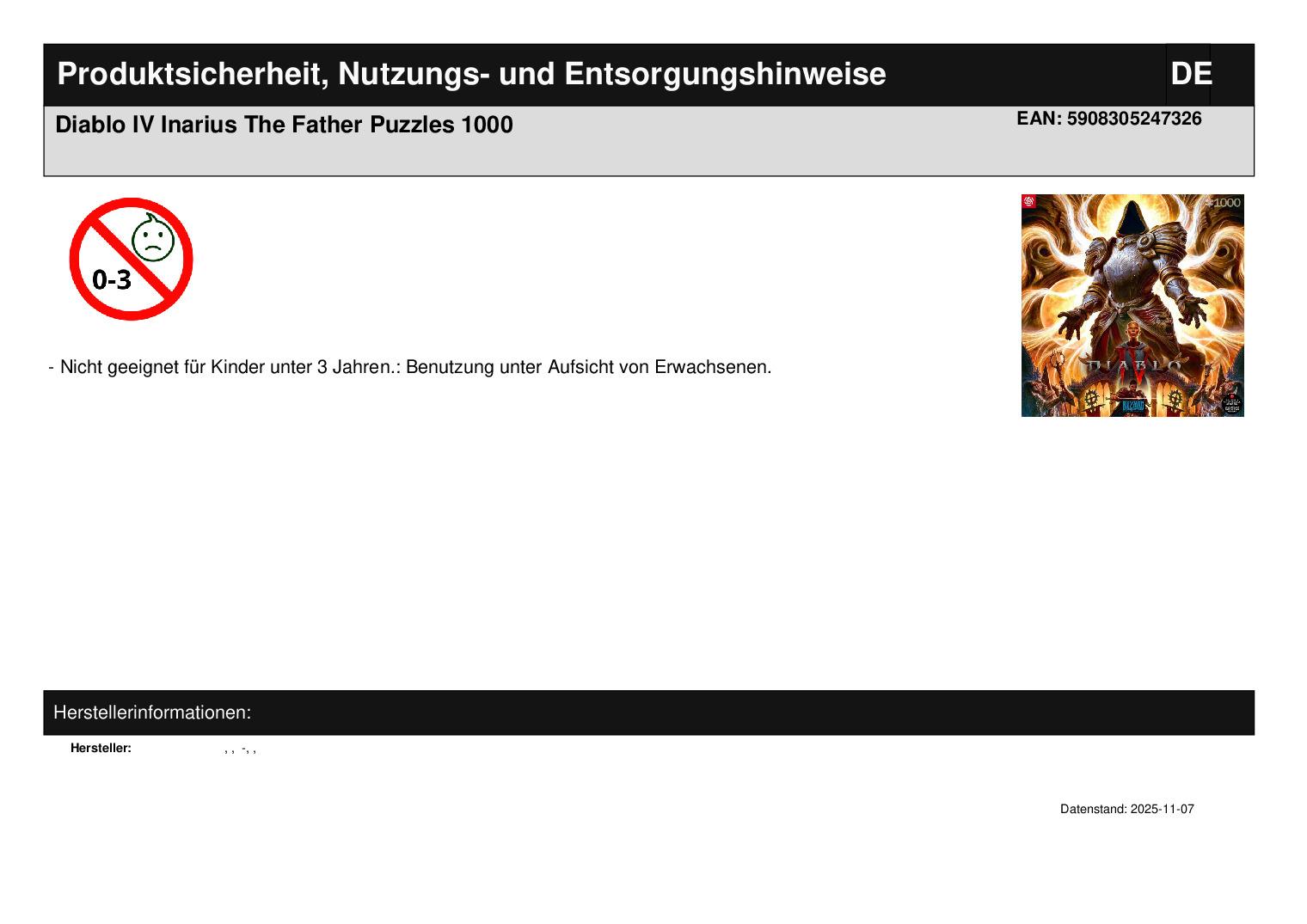 Produktinformationen "Diablo IV Inarius The Father Puzzles 1000"
