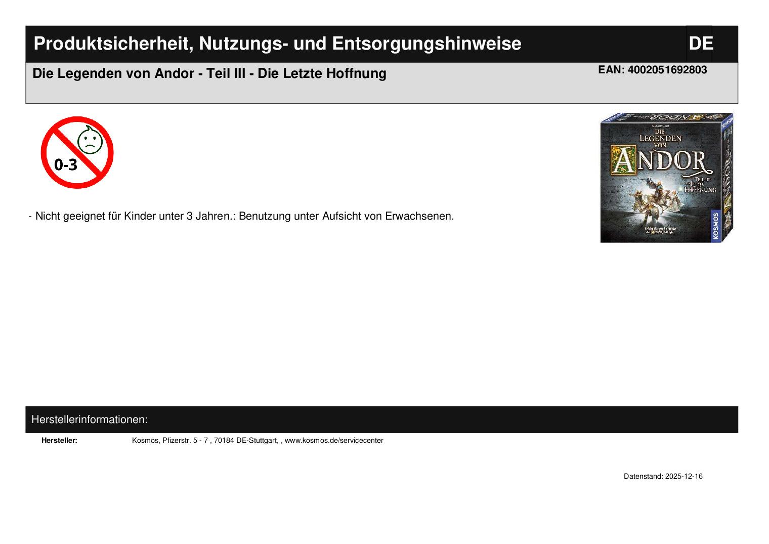 Produktinformationen "Die Legenden von Andor - Teil III - Die Letzte Hoffnung"