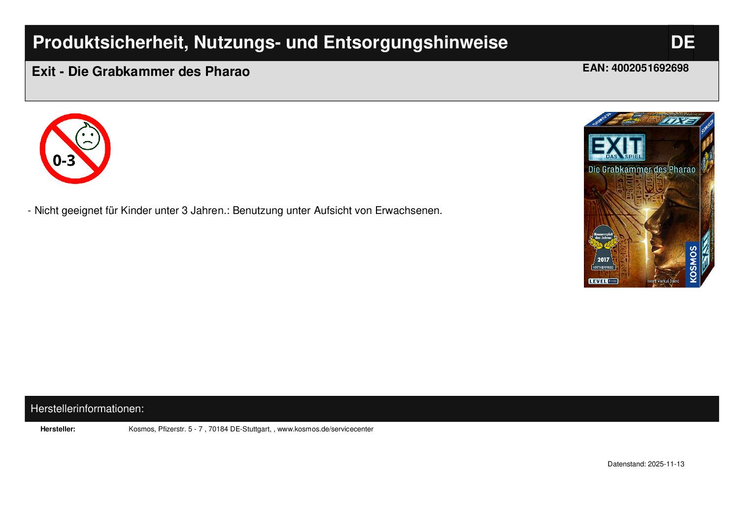Produktinformationen "Exit - Die Grabkammer des Pharao"