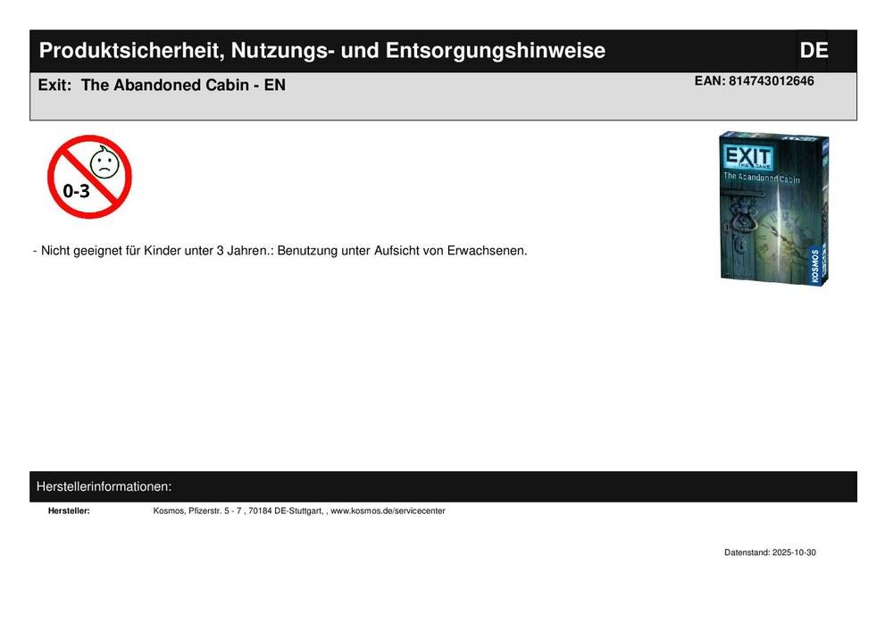 Produktinformationen "Exit: The Abandoned Cabin - EN"