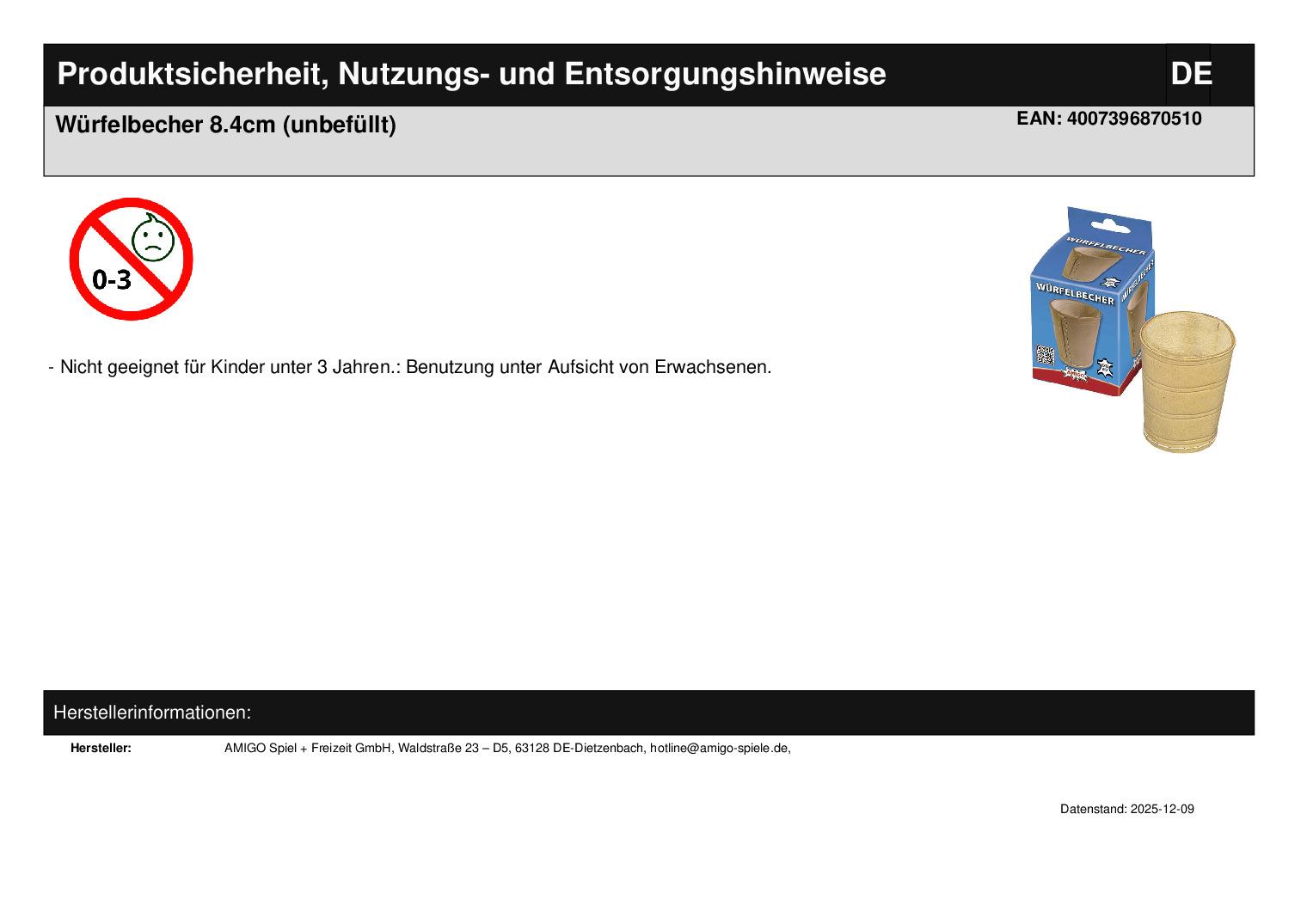 Produktinformationen "Würfelbecher 8.4cm (unbefüllt)"