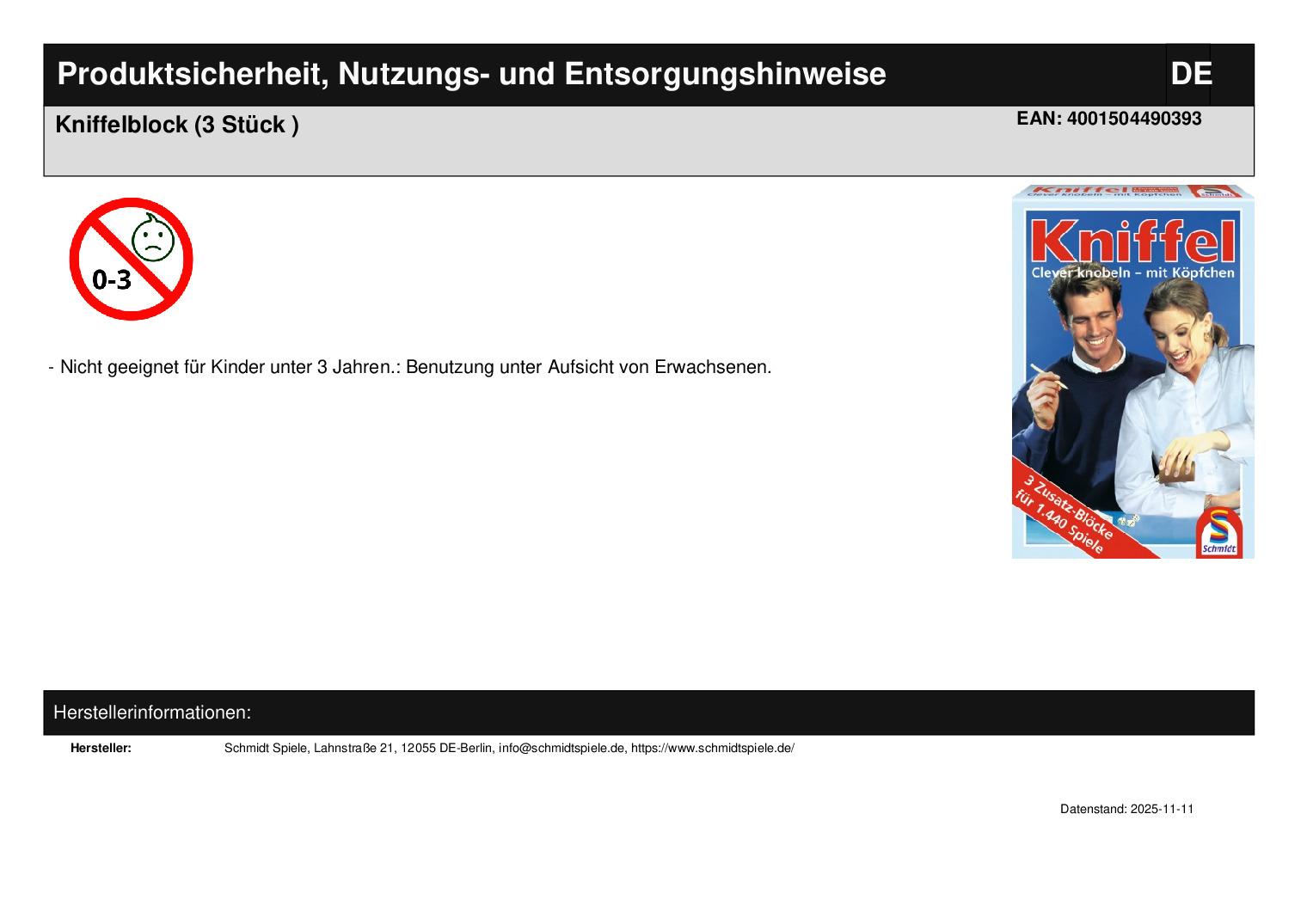 Produktinformationen "Kniffelblock (3 Stück )"